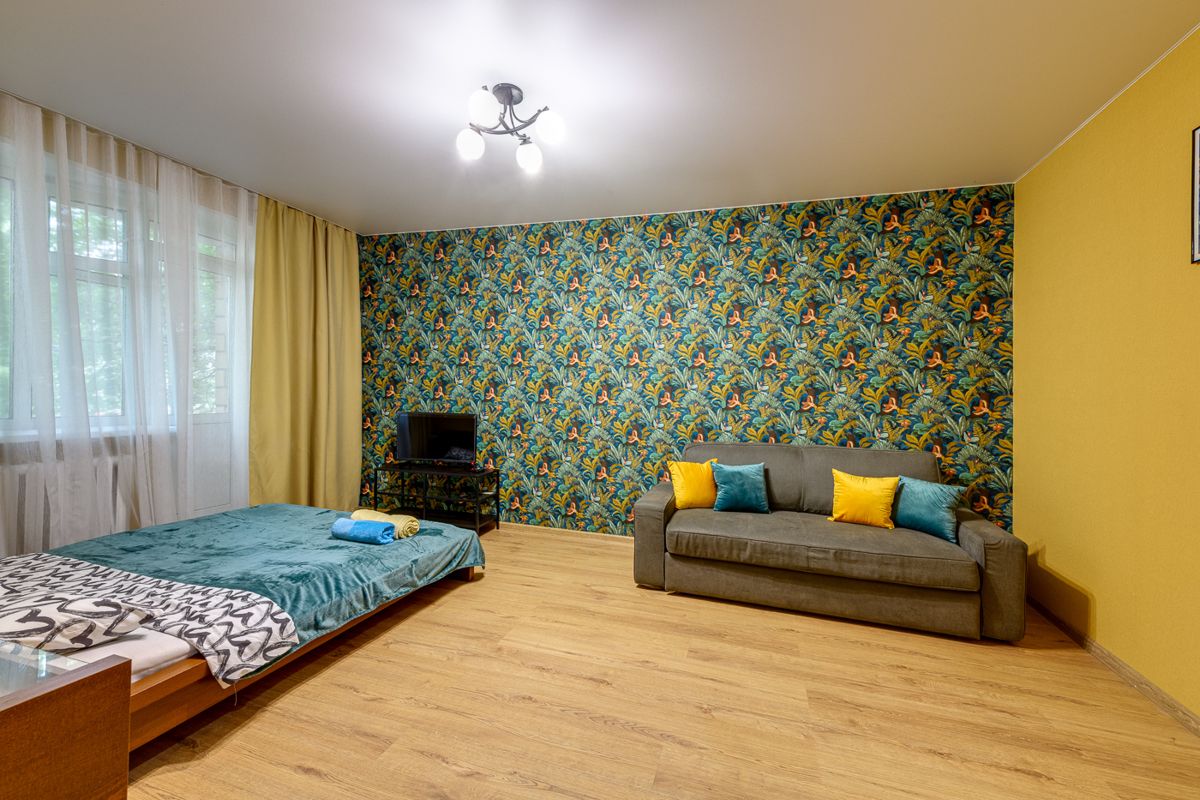 Современная мебель, двуспальная кровать, диван. бытовая техника, скоростной WI-FI, спутниковое TV, гладильная доска, сушка, оборудованная кухня, полный комплект посуды для приготовления и приёма еды, фен