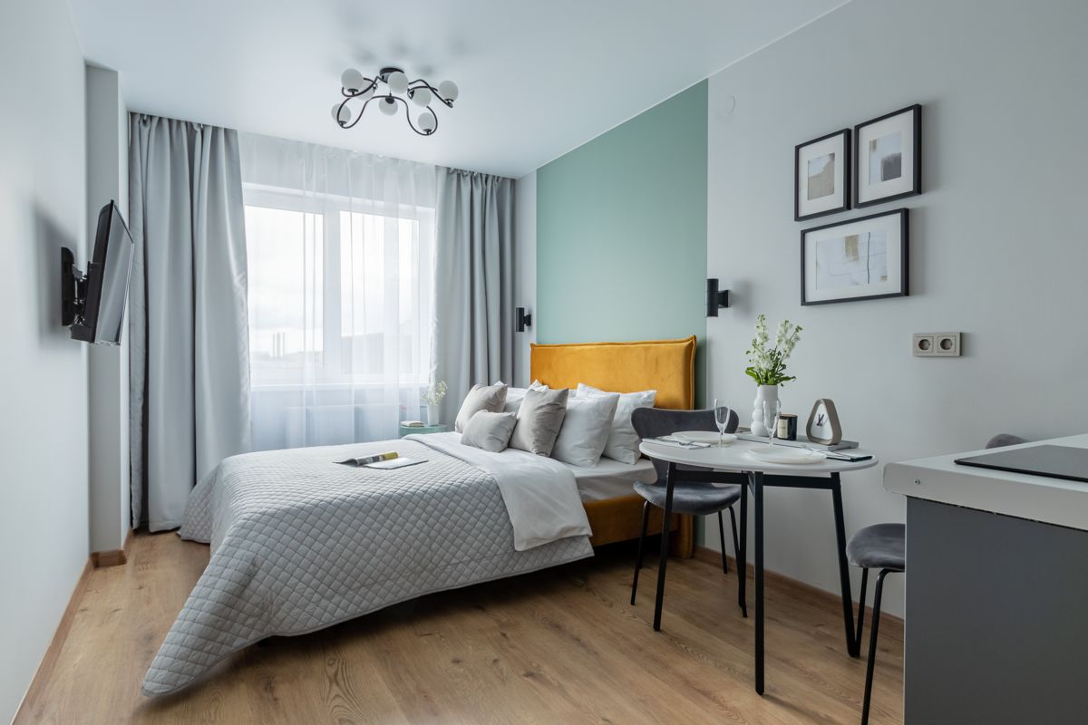 Стильная квартира-студия у метро Кировский Завод ) 2 минуты пешком до м. Кировский завод (200м). 3-5 станций метро до центра города удобное бесконтактное заселение