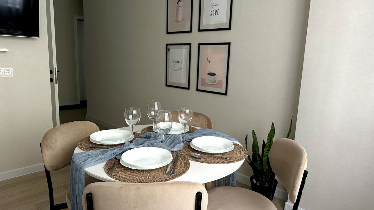 Оснащение: три смарт - телевизора (55, 55 и 43 дюйма), два кондиционера, wifi, пылесос, стиральная машина с сушкой, фен, гладильная доска и утюг, полноценная кухня с большим холодильником и морозилкой, духовым шкафом, плитой, микроволновкой и посудомоечной машиной, чайником.
