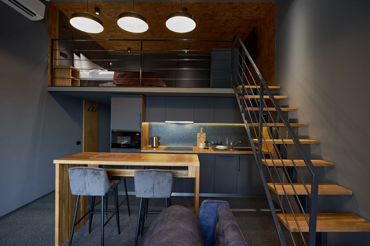 Апартамент №12 — это современные двухуровневые апартаменты на сутки в Москве, расположенные на 27 этаже ЖК «Матч Поинт». Уникальный лофт с панорамными окнами предлагает шикарные виды на Москву и оригинальную планировку с высотой потолков 4 метра. На втором уровне находится спальная зона с двуспальной кроватью (или двумя односпальными), а на первом этаже обустроены гостиная с раскладным диваном и кухня. Площадь 42 кв. м позволяет с комфортом разместить от 2 до 4 гостей, что делает эти лофт апартаменты на сутки идеальными для семейного отдыха или компании друзей.