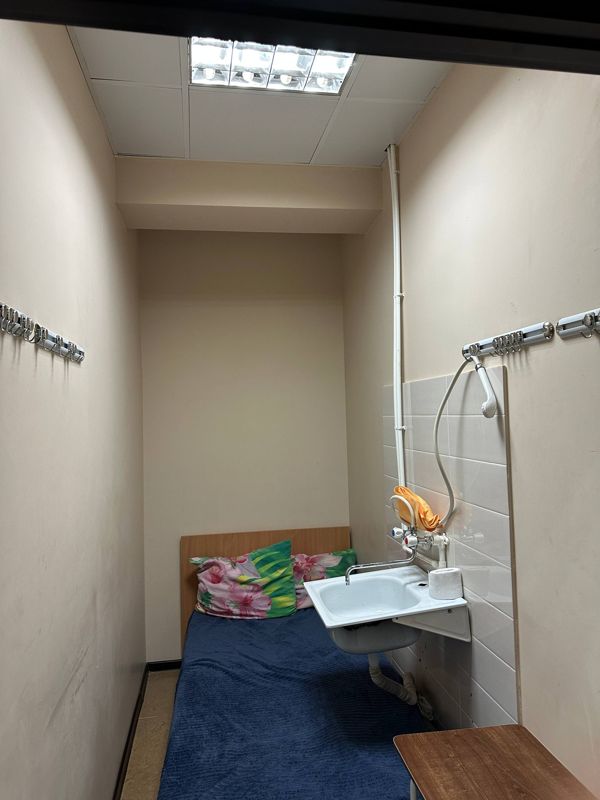 В помещении есть кровать, стол, стул, вода, раковина. С/узел на этаже.