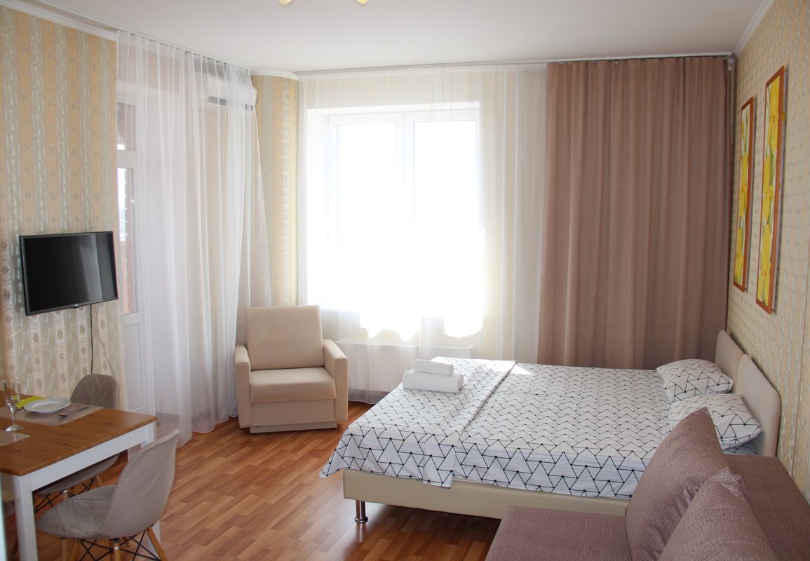 Красивый, современный, 15-этажный жилой дом, квартира со свежим ремонтом, полностью готова для комфортного проживания. Спальных мест до 4х человек, 2+2 кровать и диван.