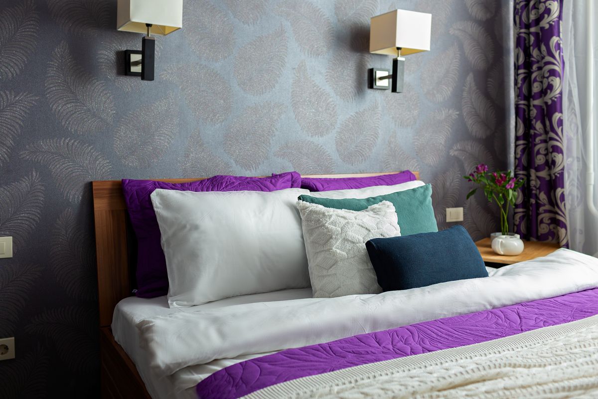 • Широкая двуспальная кровать с чистым белым постельным бельем для крепкого сна.