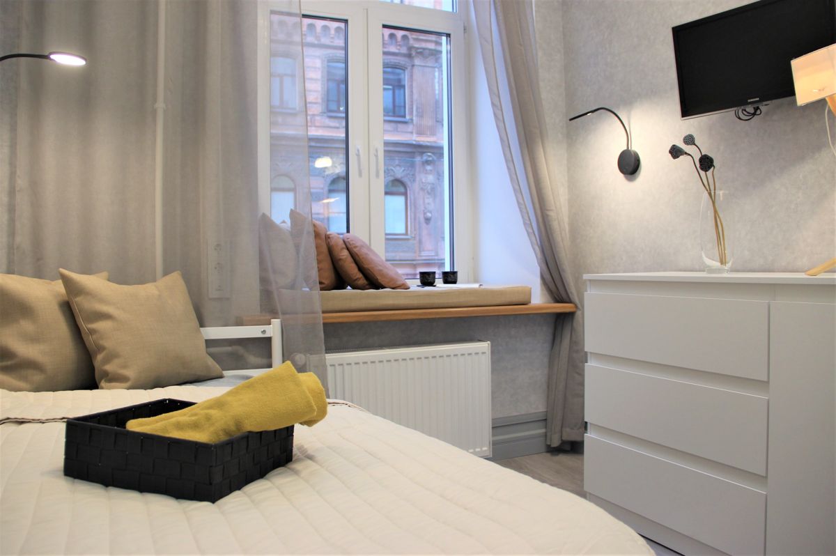 Данная квартира идеально подойдет для размещения 5 гостей и очарует своим уникальным интерьером. Вход в квартиру с Преображенской площади. В 2 минутах ходьбы находится станция метро Чернышевская, до основных достопримечательностей можно дойти пешком.