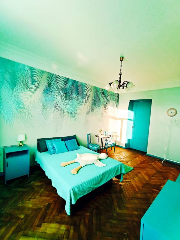 В комнате есть все необходимое , включая постельное белье, комплект полотенец. Интернет, телевизор. На кухне есть микроволновка, холодильник, необходимые предметы посуды. Горячая вода есть всегда - колонка. В квартире чисто и аккуратно. Район тихий и спокойный, свежий воздух, парк, детская площадка.