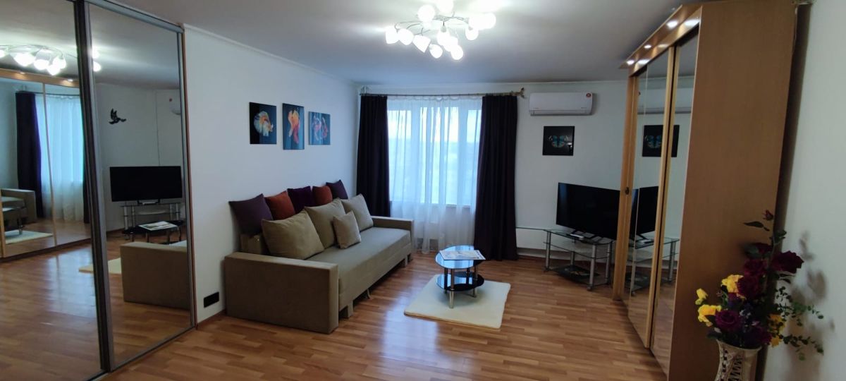 Квартира после свежего ремонта. Чистая, уютная и полностью меблирована. Из большой комнаты красивый панорамный вид на город. Из маленькой комнаты окна выходят во двор. Всего спальных мест 8. На кухне вся посуда, ножи, вилки, ложки, чашки, кофеварка и все принадлежности для готовки.