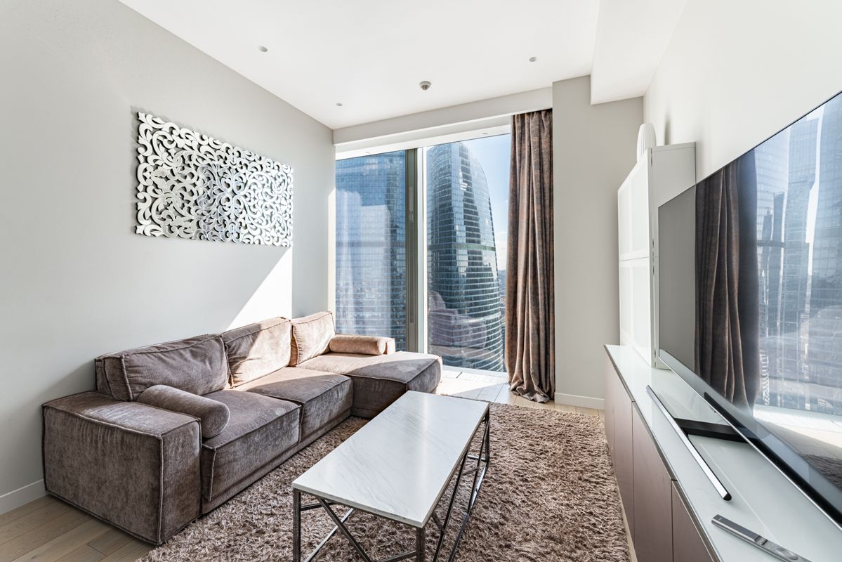 Находится на 37 этаже башни Neva. Из панорамной гостиной открывается великолепный вид на город.