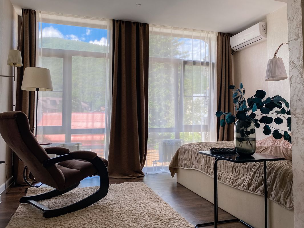 ✅ Видовые характеристики - вид на горы и центральную улицу Красной Поляны.