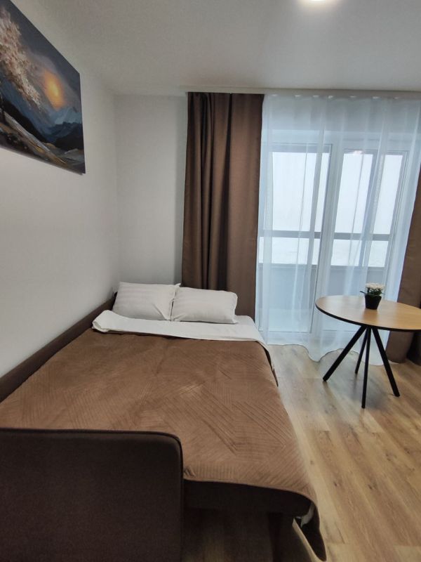 В студии есть все для комфортного проживания: двуспальный диван