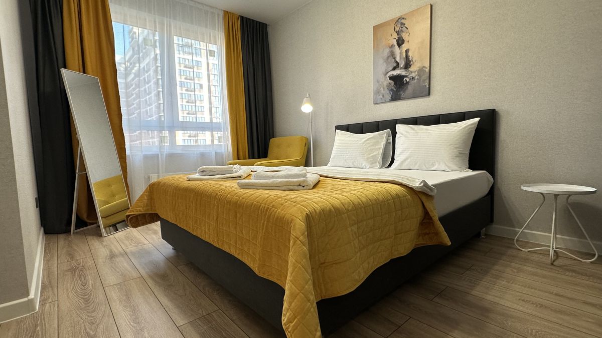 Уютная квартира в развивающемся районе Краснодара с новым ремонтом и стильной мебелью.