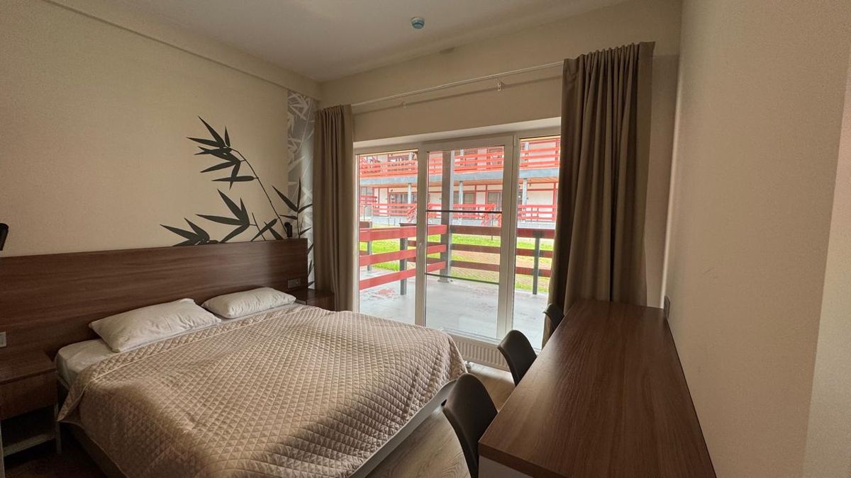 Спальня с удобной двуспальной кроватью, диваном, комодами и шкафом, а также телевизором. Кухня с обеденной зоной, плитой, вытяжкой, холодильником, чайником и посудой на четверых. Ванная комната с туалетом, раковиной и душевой кабиной. Различные мелочи, такие как зеркало, фен, гель-шампунь, мыло, полотенца и USB-розетки.