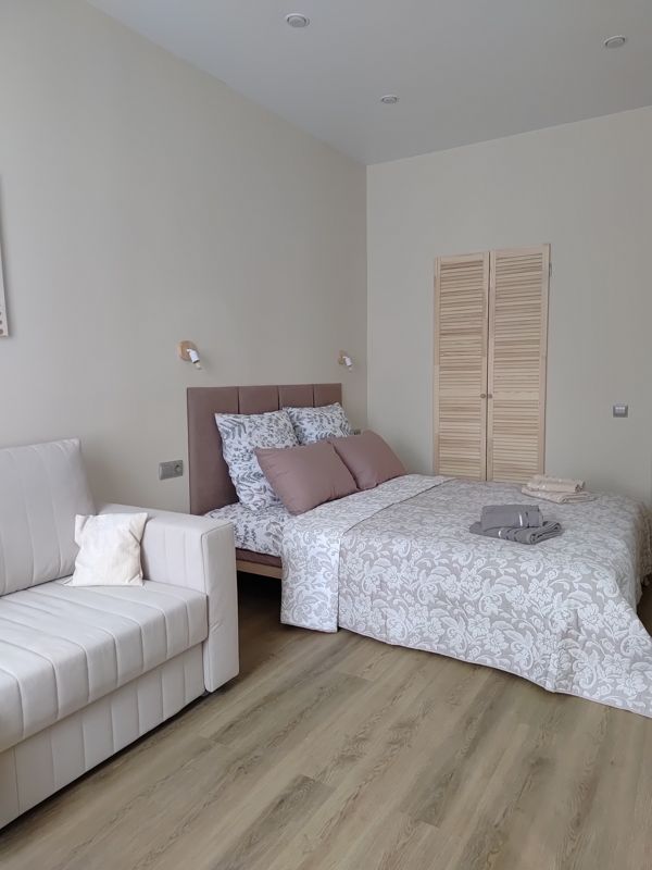 Удобные спальные места: двуспальная кровать и раскладной диван для одного человека. Всегда свежее, отглаженное постельное хлопковое бельё и комплект махровых полотенец.