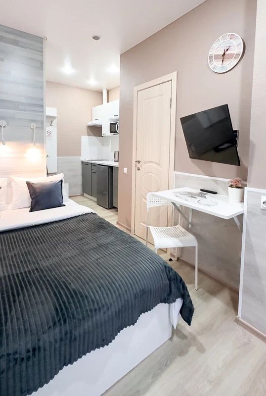 🏡 Студия полностью оборудована для комфортного проживания: телевизор, бесплатный Wi-Fi, стиральная машина, утюг, фен, варочная панель, чайник и микроволновка. Есть штопор и бокалы. Регулярная уборка профессиональной химией и дезинфекция от насекомых, а также смена белья на чистое и свежее проводятся перед каждым заездом.