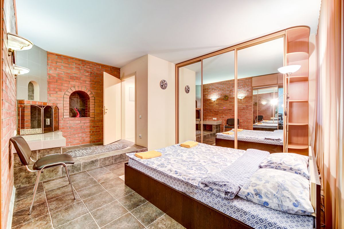 Интерьер квартиры выдержан в современном стиле лофт. Квартира максимально рассчитана на размещение 4-х человек. В спальне находится большая двуспальная кровать, шкаф-купе, а также декоративный камин. В ванной зоне - душевая кабина, сауна. В кухонной зоне Вы найдете обеденный стол, чайник, двухконфорочную электрическую плиту, холодильник, стиральную машину, телевизор, раскладывающийся диван. Санузел раздельный. Вход в парадную со двора, на двери - кодовый замок. Парковка автомобиля возможна на прилегающих улицах согласно правилам и установленным знакам.