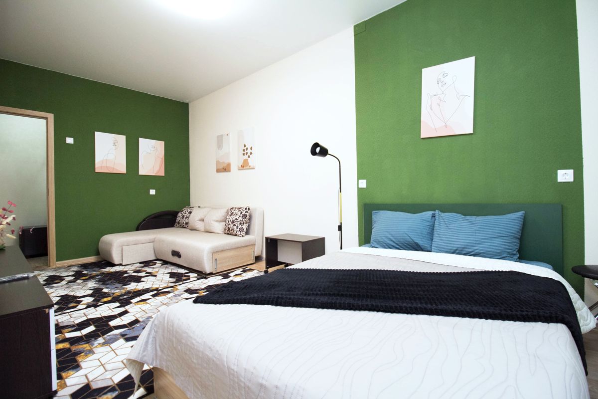 В квартире есть двух-местная кровать 140х200 с матрасом средней жёсткости. Есть раскладной диван для 2-х человек. По умолчанию квартира готовится на двоих человек, если вас больше, напишите об этом.