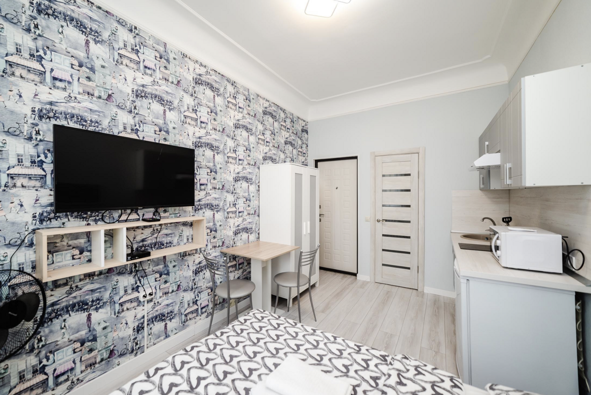 В квартире для удобного проживания имеется современная мебель: двуспальная кровать, бытовая техника, скоростной WI-FI, Спутниковое ТВ, гладильная доска, сушка, оборудованная кухня, полный комплект посуды для приготовления и приёма еды, фен