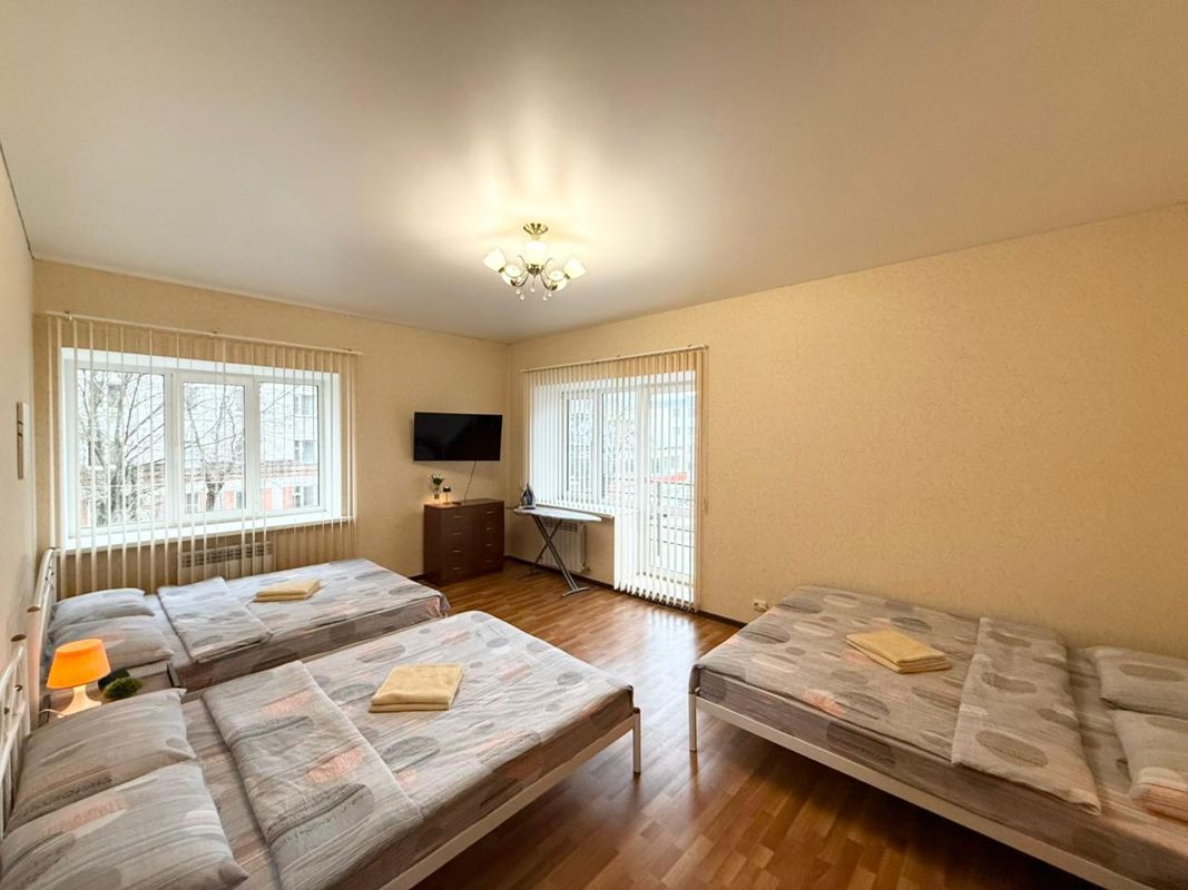 В вашем распоряжении — всё необходимое для комфортного проживания. В квартире установлены 2 телевизора со Smart TV 📺, а также размещены 4 удобные кровати: 3 кровати размером 140 × 200 см и 1 кровать размером 160 × 200 см. Все кровати оснащены ортопедическими матрасами, которые обеспечат вам здоровый и крепкий сон 🛌.