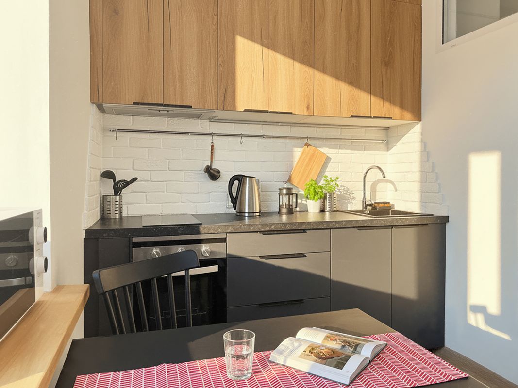 ✅Кухня со всем необходимым (холодильник, варочная панель, духовой шкаф, микроволновая печь, чайник, а так же посуда и приборы)