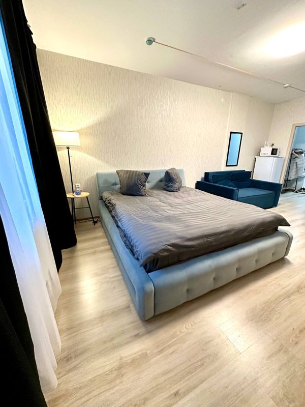 *Квартира укомплектована всей необходимой мебелью в том числе кроватью размером кинг сайз (220 на 240), 20см ортопедическим матрасом на котором ваш сон будет очень комфортным и техникой(фен,утюг,тостер,блендер,чайник,кофеварка,пылесос,холодильник,свч,варочная панель),а так же средствами гигиены:полотенца,постельное белье,посуда и многое другое.