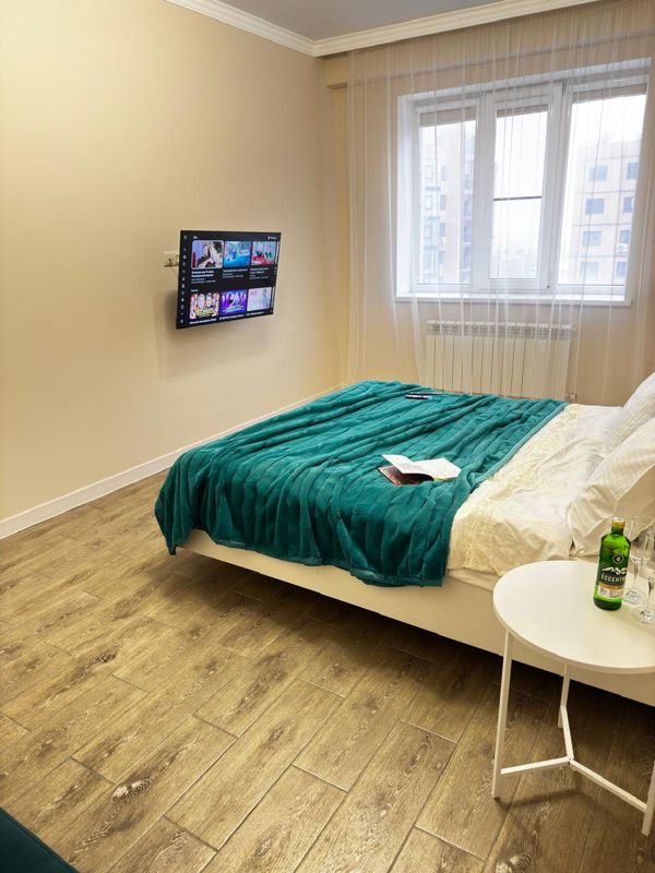 - уютная однокомнатная квартира 50м², со всем необходимым для комфортного проживания (широкая двухспальная кровать раскладывающийся диван; подушки, одеяла; посуда, средства гигиены, одноразовые тапочки и полотенца).