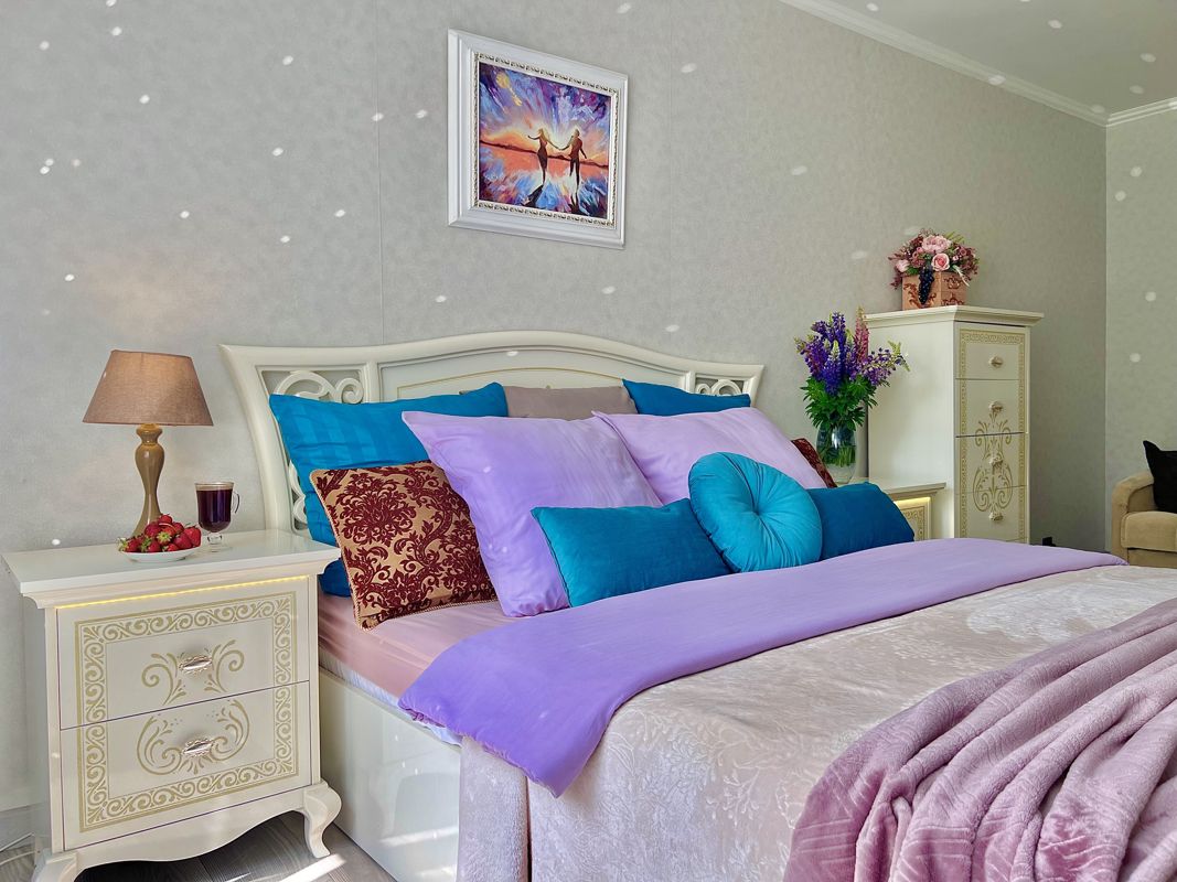 Белоснежная спальня с подсветкой и ортопедическим матрасом, смарт телевизор, шторы блекаут, создают атмосферу уюта и позволяет вам прекрасно отдохнуть.