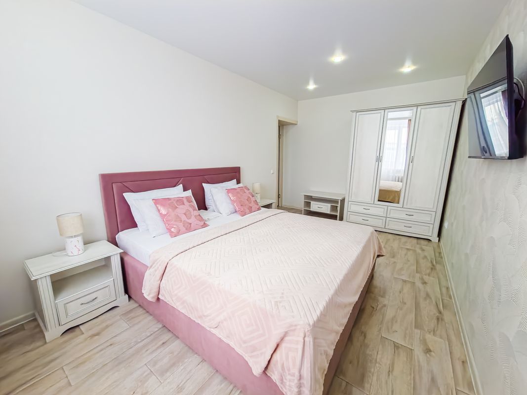 Спальня 1: Комфортная двуспальная кровать 160×200 см с ортопедическим матрасом.
