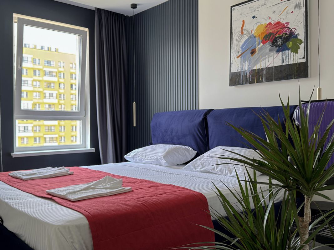 Особенность этих апартаментов — интерьеры с элементами современного искусства. На стенах — оригинальные работы художников из Москвы, Санкт-Петербурга, Ростова-на-Дону и Краснодара. Коллекция постепенно пополняется и обновляется, поэтому каждый заезд может быть немного другим. Это редкое сочетание — уюта жилья и атмосферы арт-пространства, где дизайн и искусство работают на комфорт и вдохновение.