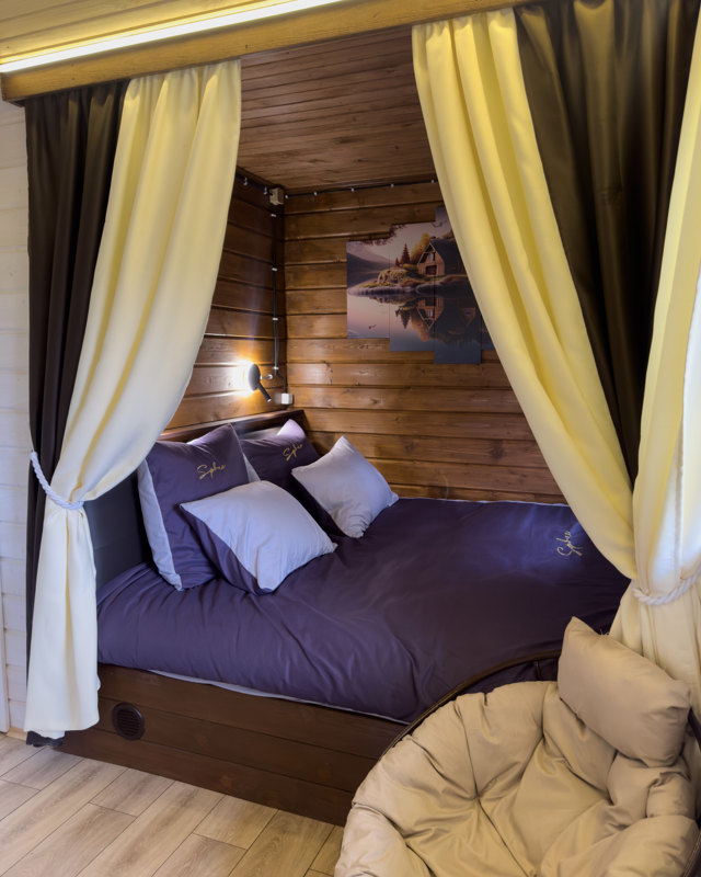 Для вас небольшой уютный коттедж на 2 человека с возможностью установки дополнительного спального места, подойдёт как для влюблённых, так и для семейных пар, для гостей с детьми, для гостей с животными.
