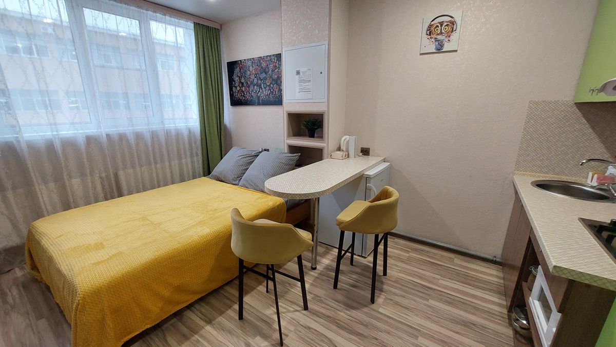 Сдаются теплые, уютные апартаменты-студия со всем необходимым для проживания. Есть вся инфраструктура(магазины, фитнес зал, бассейн,)Квартира расположена в 5 минутах от Ж/Д и Автовокзала! Общественная остановка во все направления города. Так же в пешей доступности все достопримечательности города! Двор закрывается на шлагбаум и находится под видеонаблюдением 24 часа. Квартира для проживания максимально 2 персон спальное место 1 двухспальная кровать 140×200 с ортопедическим матрасом.