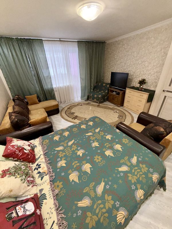 В комнате установлена двухспальная кровать, удобный диван и раскладушка что позволяет разместить до пяти человек. Для вашего удобства предоставлены средства гигиены и постельное бельё. Кухня оборудована современной техникой, включая плиту и микроволновку.