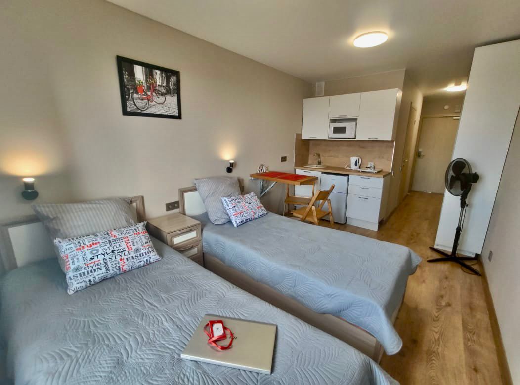 Стильная квартира-студия у метро Кировский Завод ) 2 минуты пешком до м. Кировский завод (200м). 3-5 станций метро до центра города удобное бесконтактное заселение