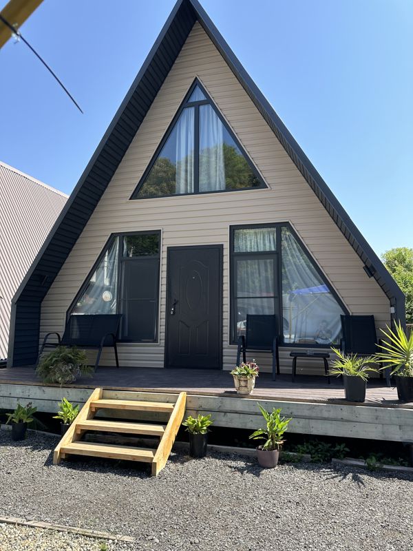 Недалеко от берега, где волны шепчут сказки на рассвете, а вечером воздух наполняется солью и ароматом сосновой хвои, стоят два домика-близнеца. Они одинаково уютные, оба в форме A-frame, как будто два маленьких треугольника, нарисованные на фоне неба.