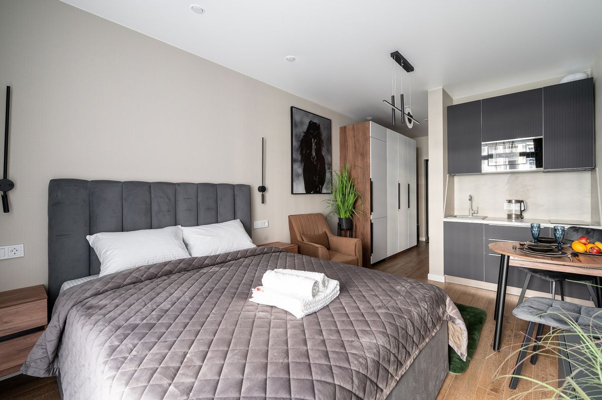 Комплектация «Комфорт+» включает всё — от зубных наборов до чая/кофе. Новая техника, дизайнерский ремонт и ортопедическая кровать гарантируют сон как в пятизвездочном отеле.