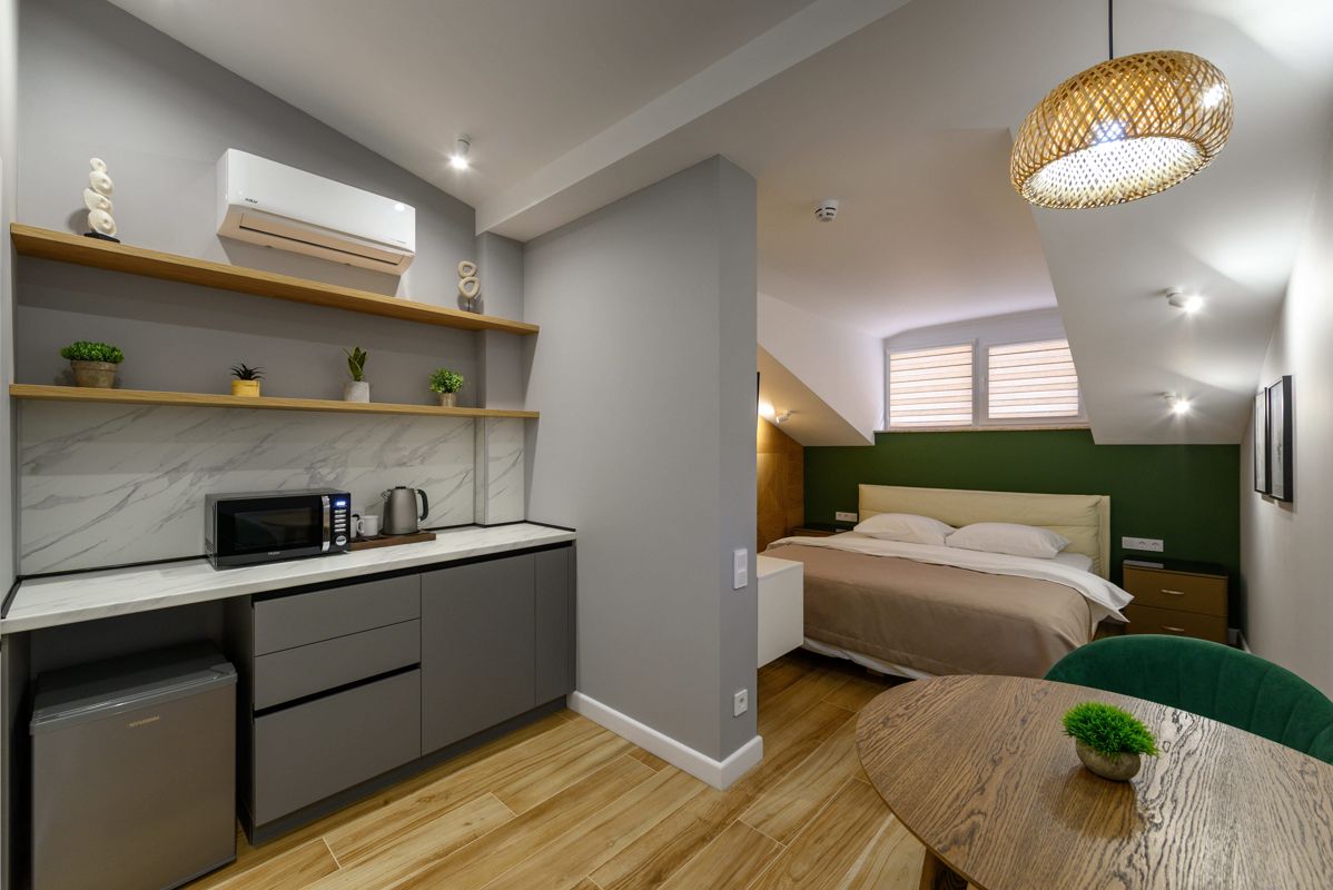 🏠 В апартаменте есть мини-кухня, раскладное кресло 80×190см, спальное место 160×200см, ванная комната — идеальное пространство для комфортного отдыха. Апартаменты рассчитаны на размещение до трёх человек: спальные места организованы как 2+1