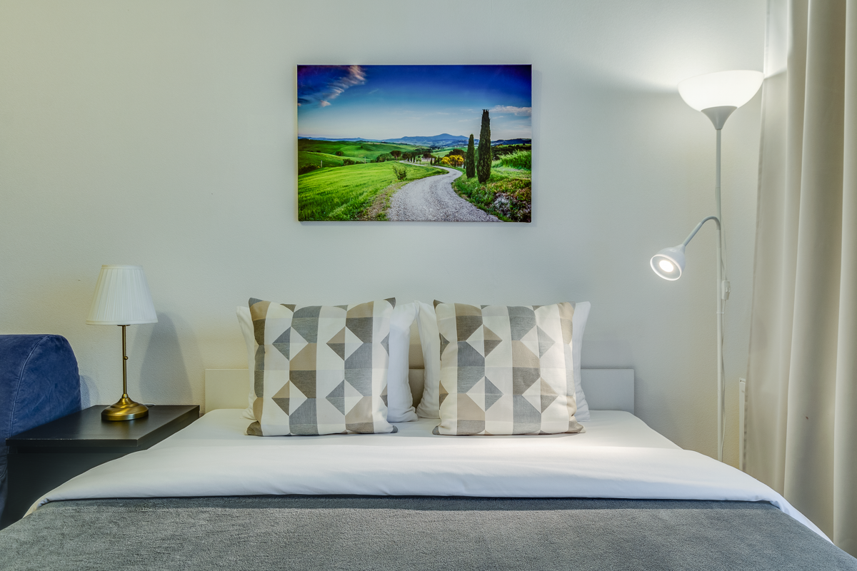 Стильная студия для 4 человек площадью 25 м2 в рядом с Финским заливом с двуспальной кроватью с ортопедическим матрасом, раскладывающимся широким диваном, TV с цифровыми каналами и Smart TV, имеется комфортное рабочее место.