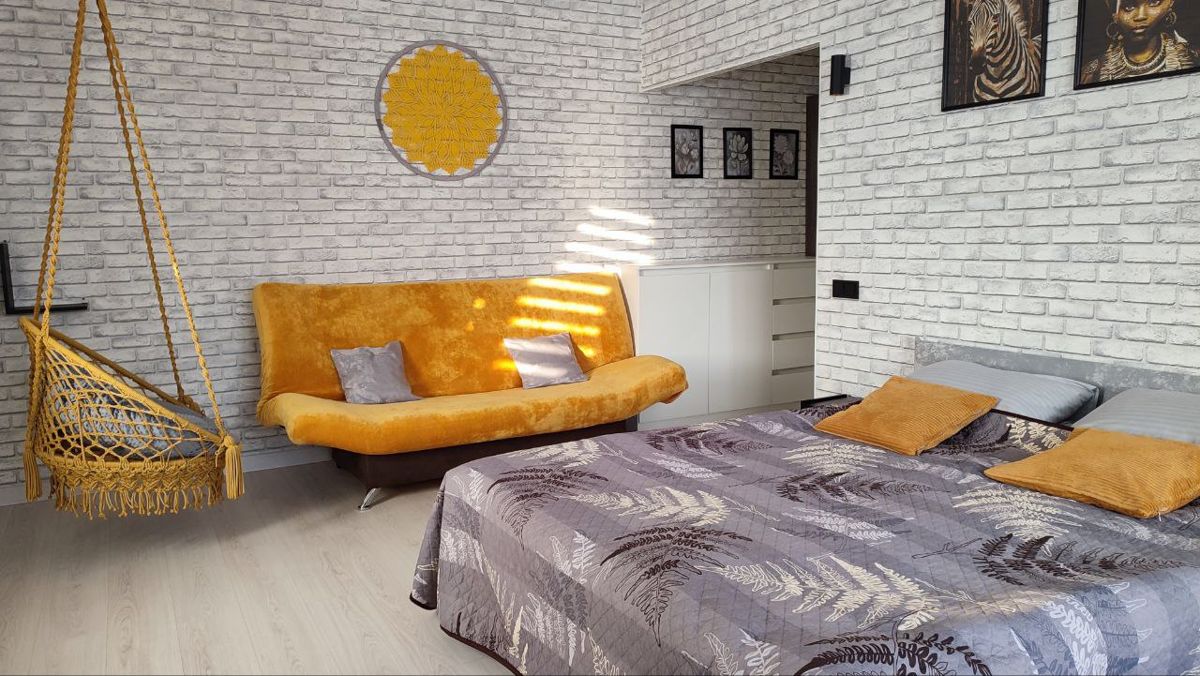 Тёплая, чистая, просторная квартира с подвесным креслом недалеко от жд вокзала - направо по тротуару, мимо Сбербанка 5~10 минут.