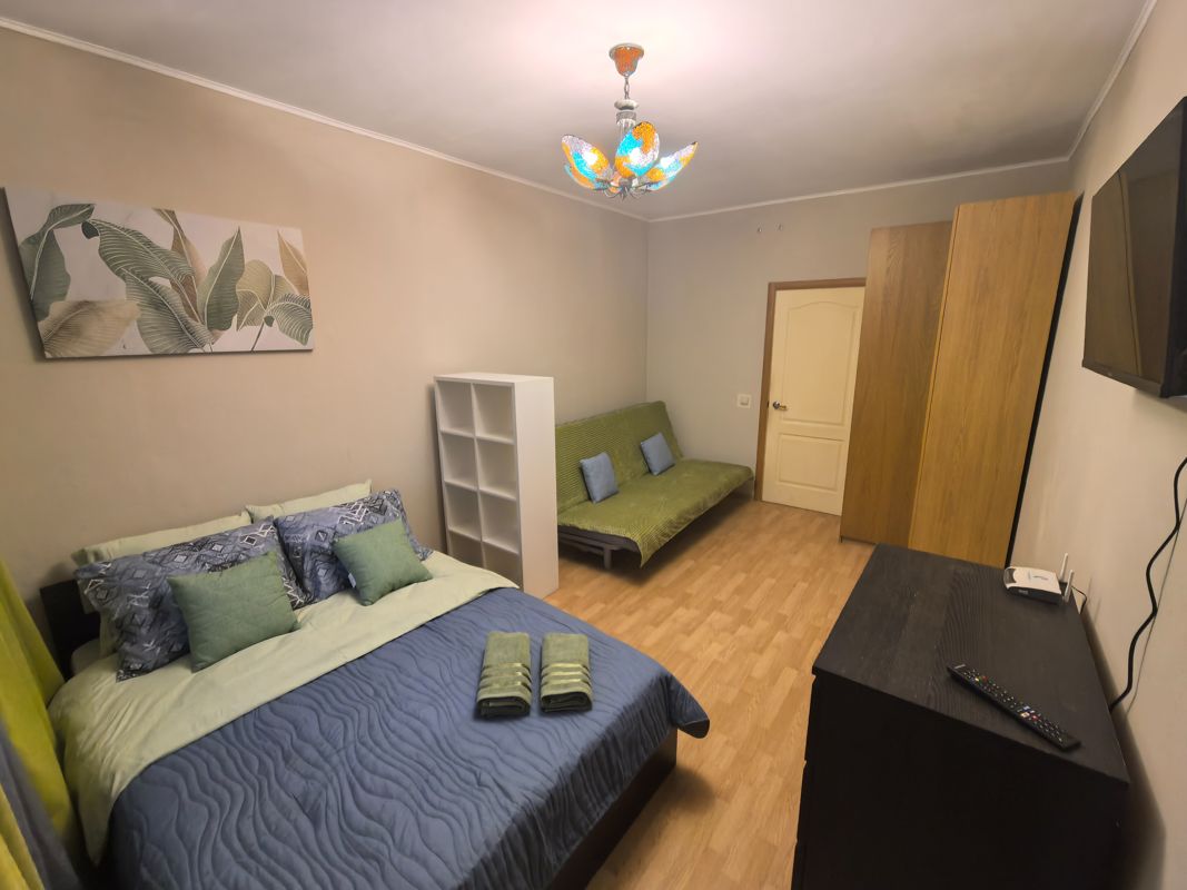 Есть всё необходимое для проживания до 3 гостей: двуспальная кровать с хорошим ортопедическим матрацем, раскладной диван, постельные принадлежности.