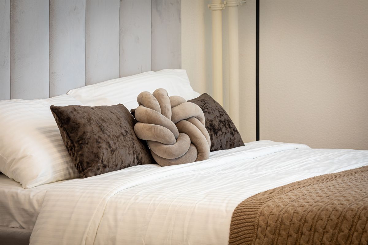 1-комн. апартаменты 28 м2 на четвертом этаже: двуспальная кровать с ортопедическим матрасом (140х200), раскладной диван (140х200), Wi-Fi и Smаrt-ТV