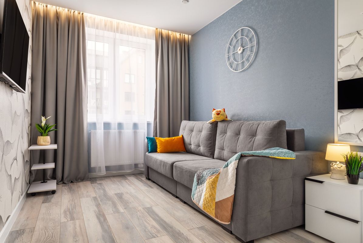 В квартире с комфортом могут разместиться три человека (двуспальная кровать и диван-кровать).