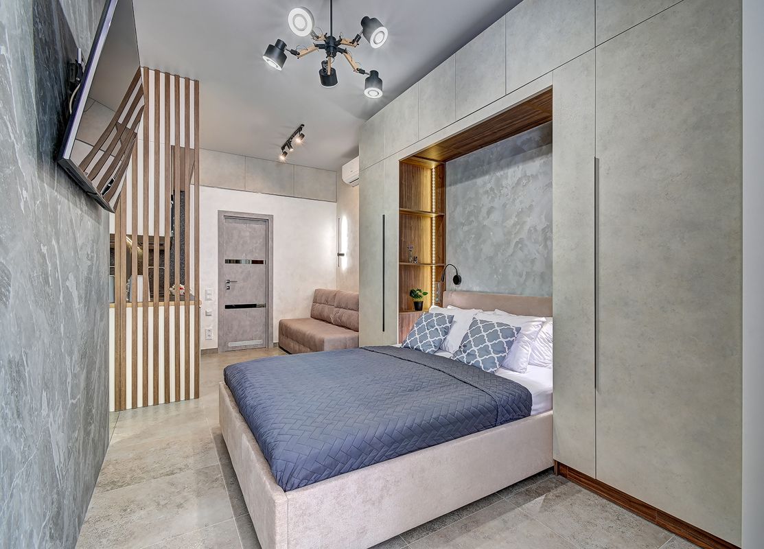 🛏Спальная зона: кровать 160×200 с ортопедическим матрасом, SMART-телевизор, вместительный шкаф, кондиционер.