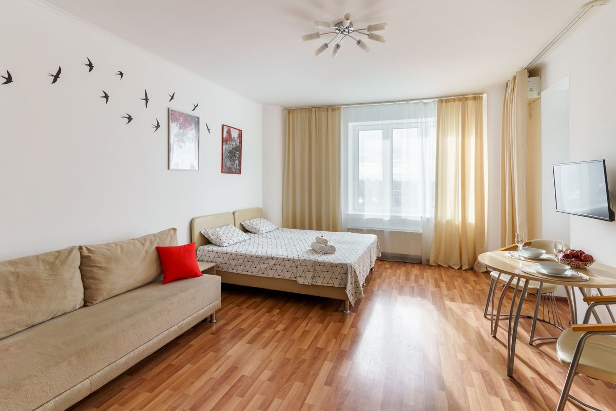 Красивый, современный, 15-этажный жилой дом, квартира со свежим ремонтом, полностью готова для комфортного проживания. Спальных мест до 4х человек, 2+2 кровать и диван.