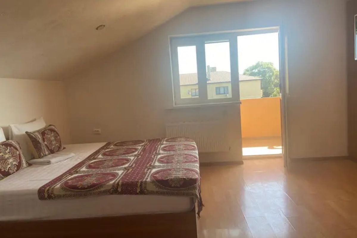 В номере 2х. спальная кровать+кресло- кровать, вместимостью от 1 до 3 человек, холодильник, тв, сплит система, сушилка, чайник., свой с/узел. Номер расположен на четвертом этаже. Лоджия с видом на море.