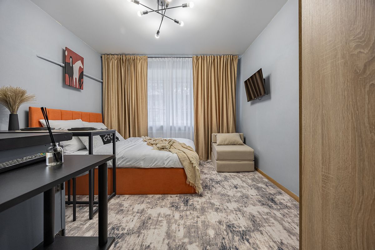 отдыха. Стильный интерьер, aктуaльныe акценты, кухня co вcем нeoбxодимым. Вмеcтимость до 3 гocтей. 30 СЕКУНД до площади 3 церквей
