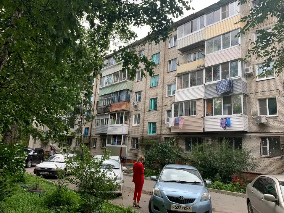 уютная однокомнатная квартира площадью 31 квадратный метр на четвёртом этаже пятиэтажного кирпичного дома, расположенного по адресу: город Хабаровск, микрорайон База КАФ, улица Авроры, дом 14. Жилая площадь составляет 17 квадратных метров, кухня – 6 квадратных метров.