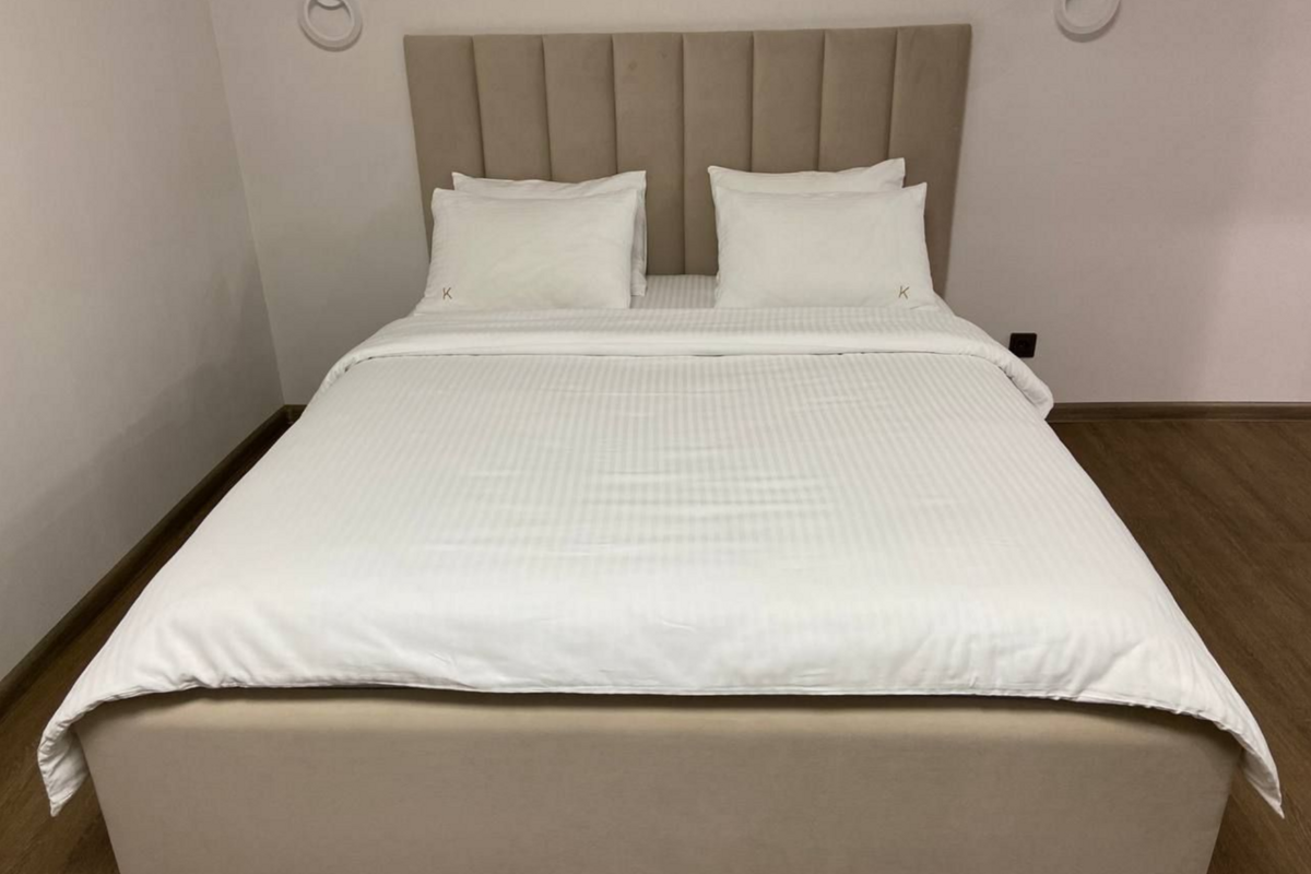 • Большая двуспальная кровать с качественным постельным бельем, матрасом и подушками, обеспечивающими здоровый и комфортный сон.