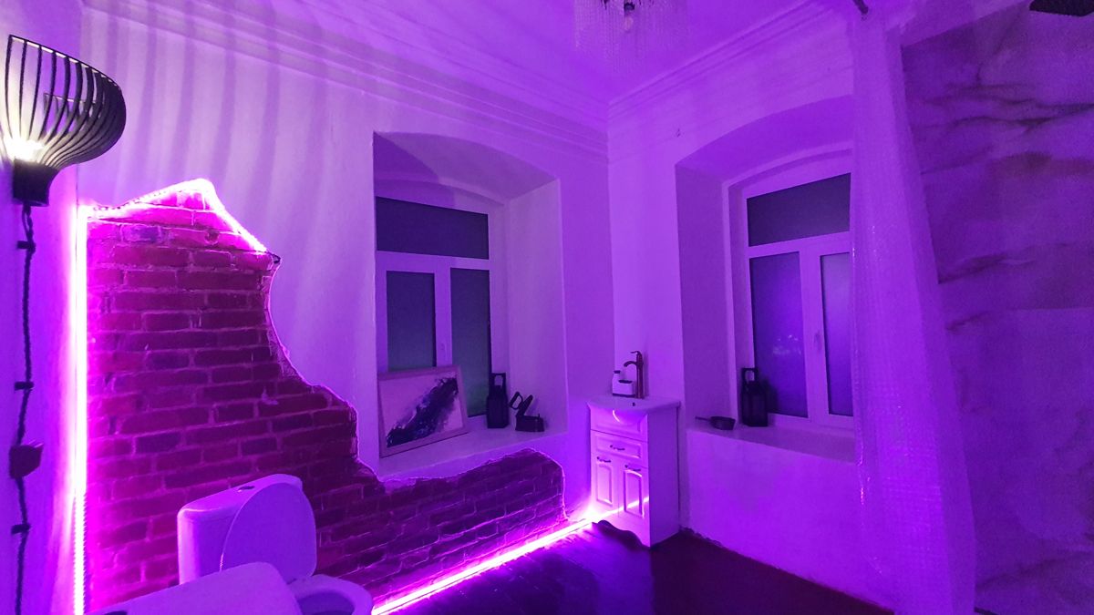 Роскошная ванная комната не оставит равнодушным никого, из окон открывается вид на купеческую улицу. Оснащена современным сан узлом, тропическим душем, стиральной машиной.