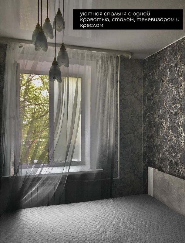 -спальная комната с одной кроватью, креслом, телевизором, столом (постельное белье и полотенца предоставляются без взимания дополнительной платы)