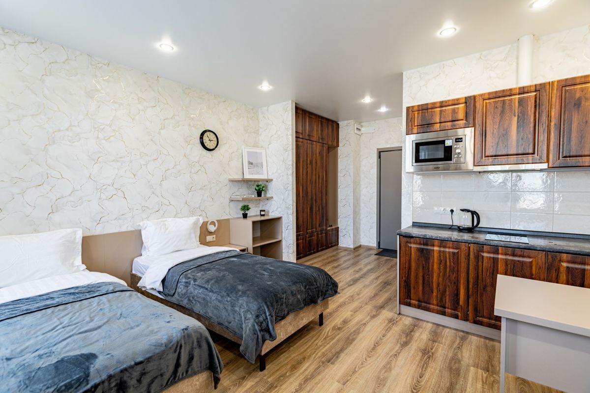 🛋 Уютная студия с современной мебелью, техникой и видом на город — максимум комфорта для одного или двух гостей.
