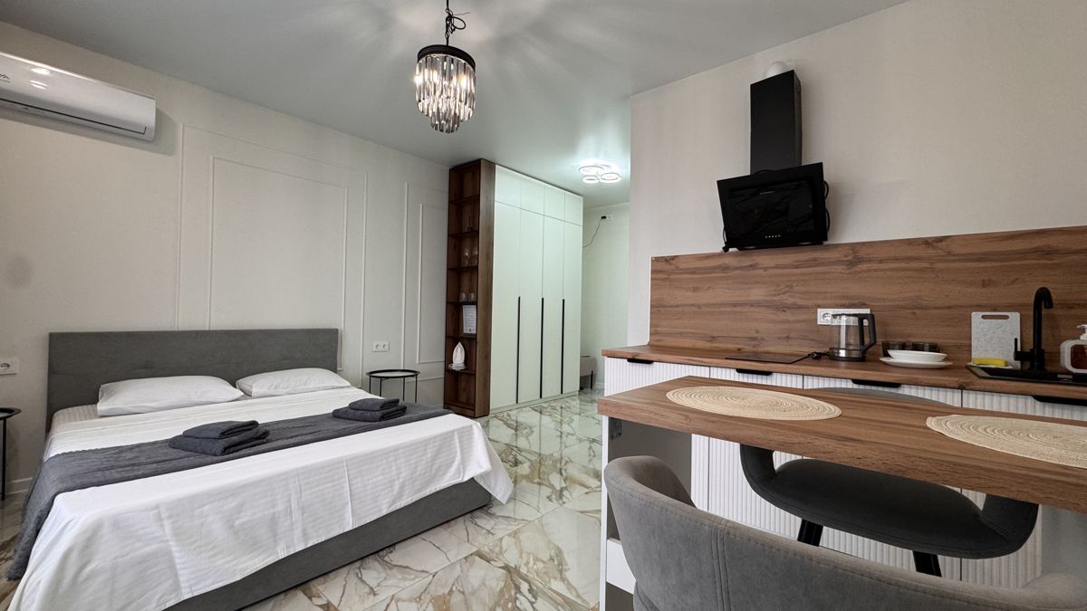 Стиральная машинка, двуспальная кровать с ортопедическим матрасом 200/160, кухонная зона, телевизор 120 см Smart TV, холодильник, плита, духовой шкаф, чайник, посуда, утюг, гладильная доска, сушилка для белья, фен, безлимитный Wi-Fi.