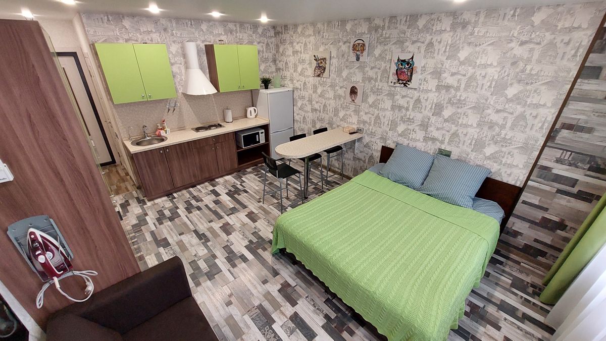 Сдаются теплые, уютные апартаменты-студия со всем необходимым для проживания. Есть вся инфраструктура(магазины, фитнес зал, бассейн,)Квартира расположена в 5 минутах от Ж/Д и Автовокзала! Общественная остановка во все направления города. Так же в пешей доступности все достопримечательности города! Двор закрывается на шлагбаум и находится под видеонаблюдением 24 часа. Квартира для проживания максимально 3 персон(2 взрослых+1 ребёнок(занимающий отдельное спальное место)), спальные места(2+1): двуспальная кровать 160×200 и диван кровать 70×200 .